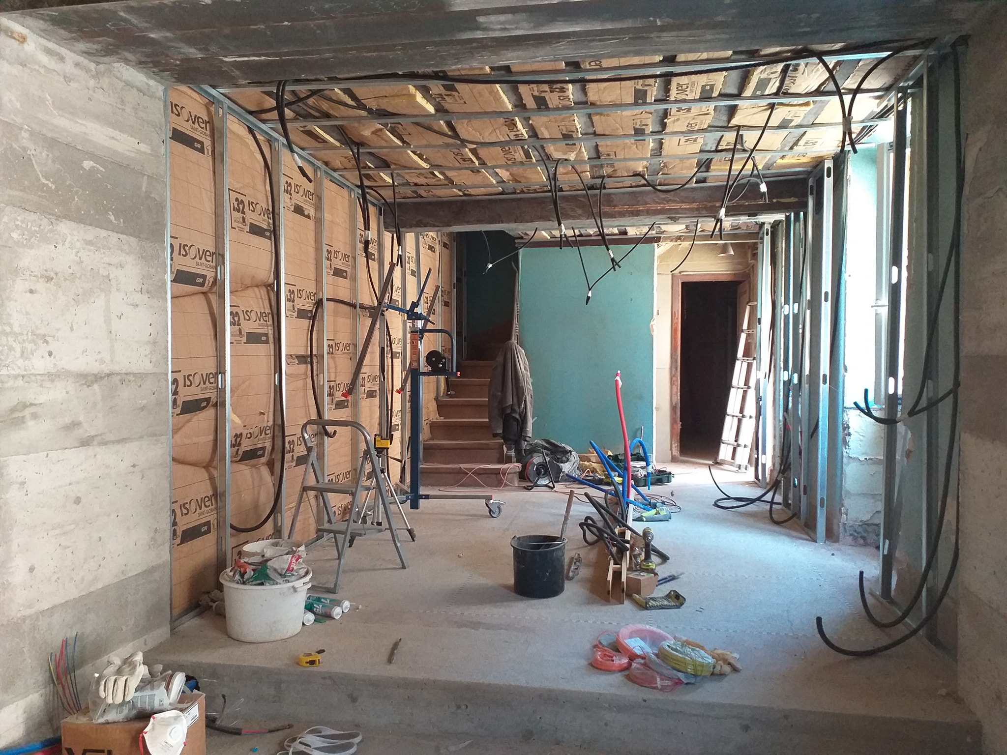 Installation des gaines électriques avant la pose des plaques de plâtre